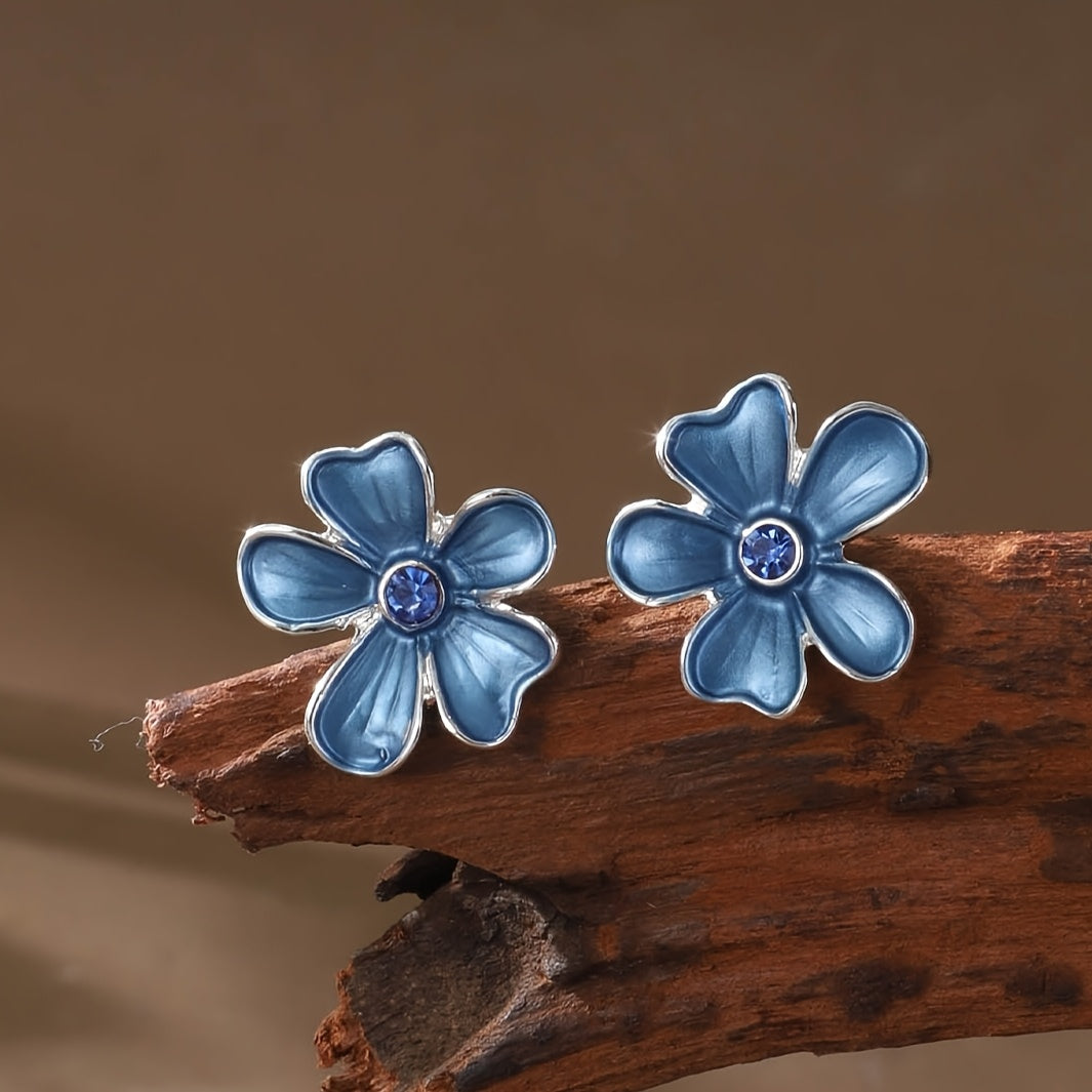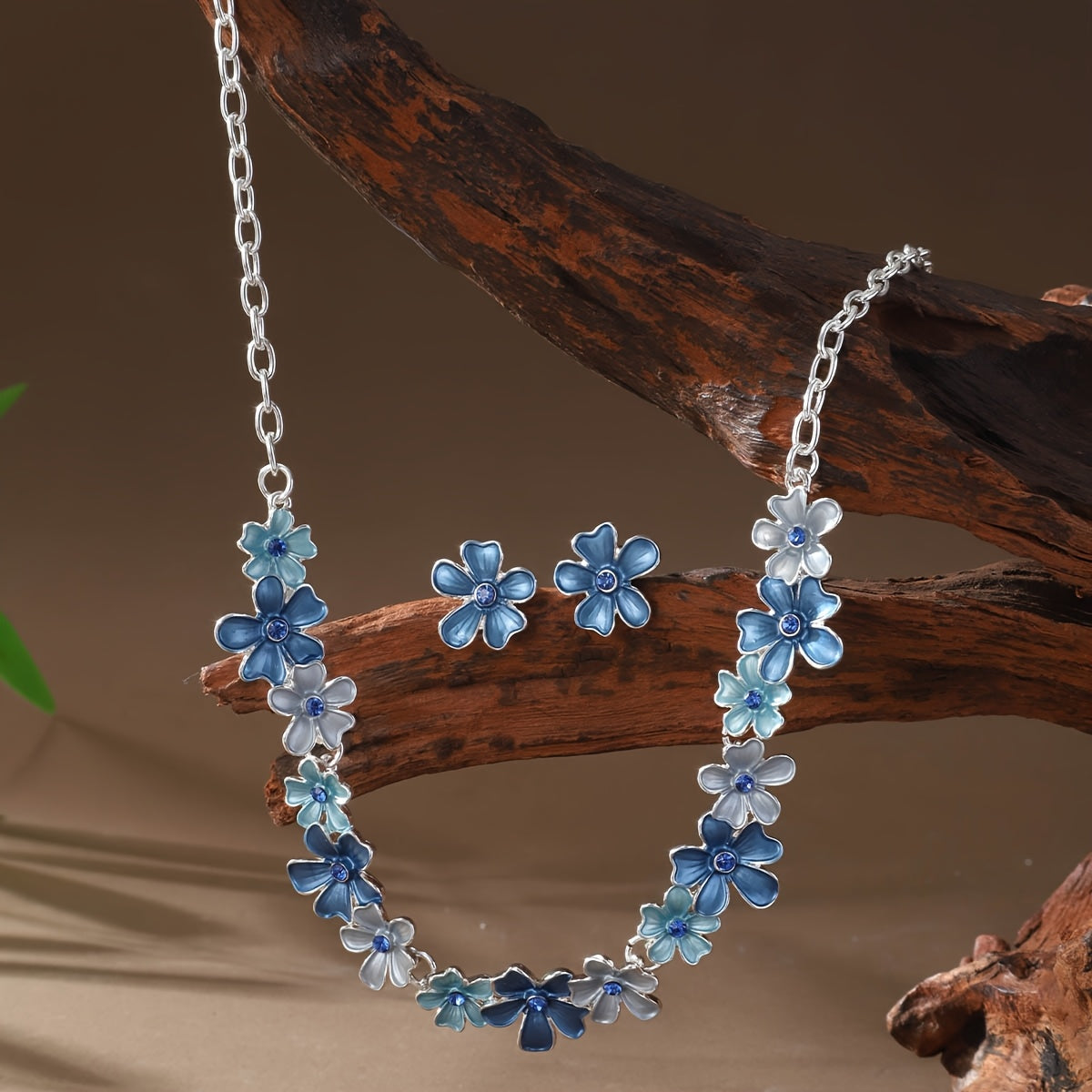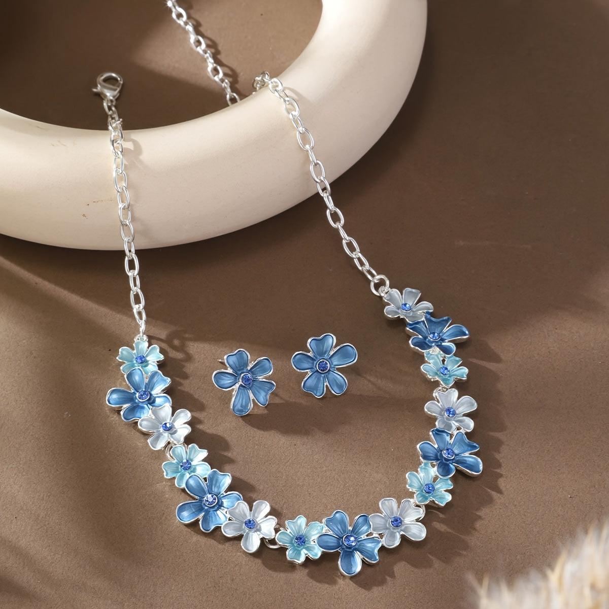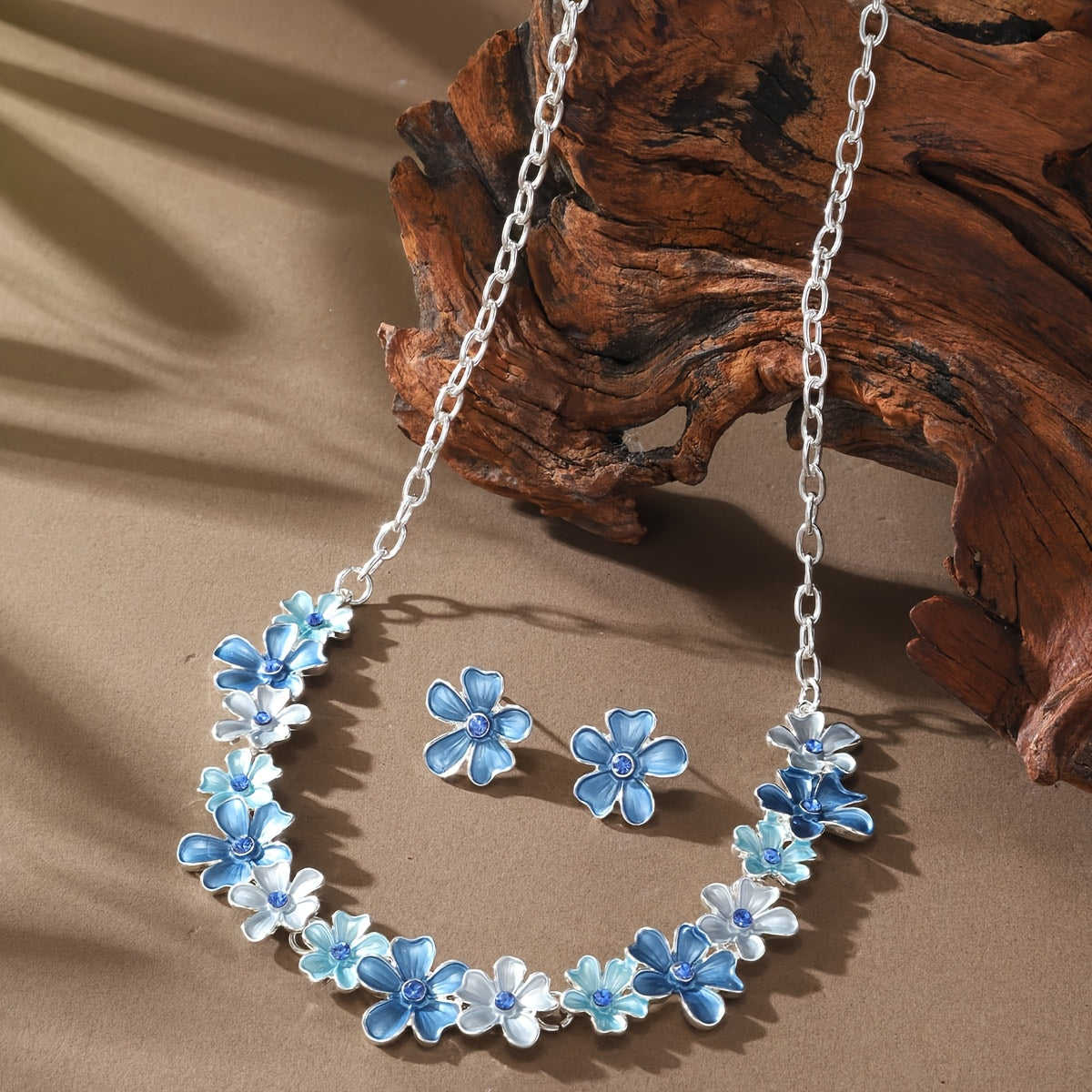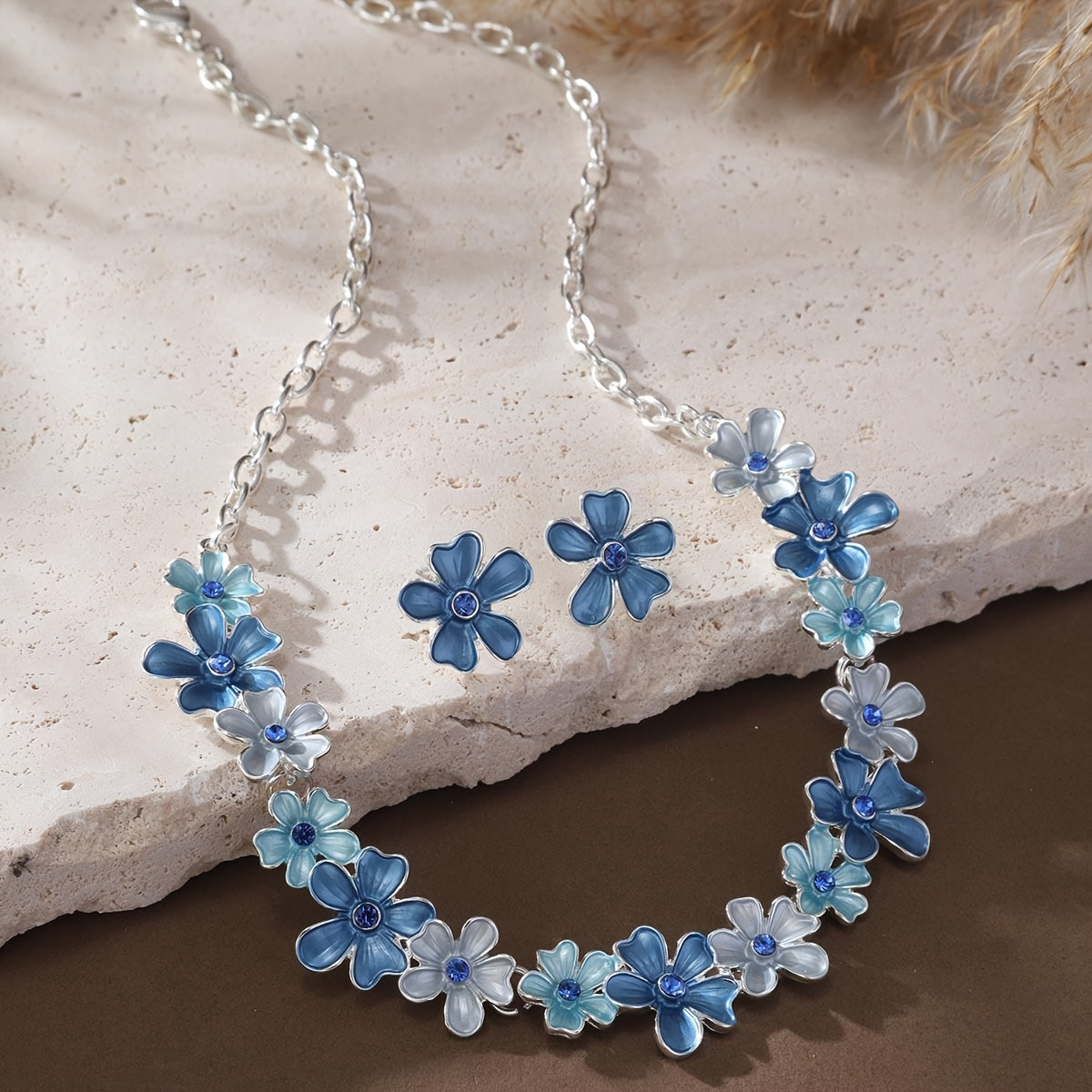 💙 Mavi Büyük Çiçekli Takı Seti – Bahar Esintili Şıklık