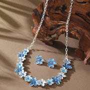 💙 Mavi Büyük Çiçekli Takı Seti – Bahar Esintili Şıklık - Mavi