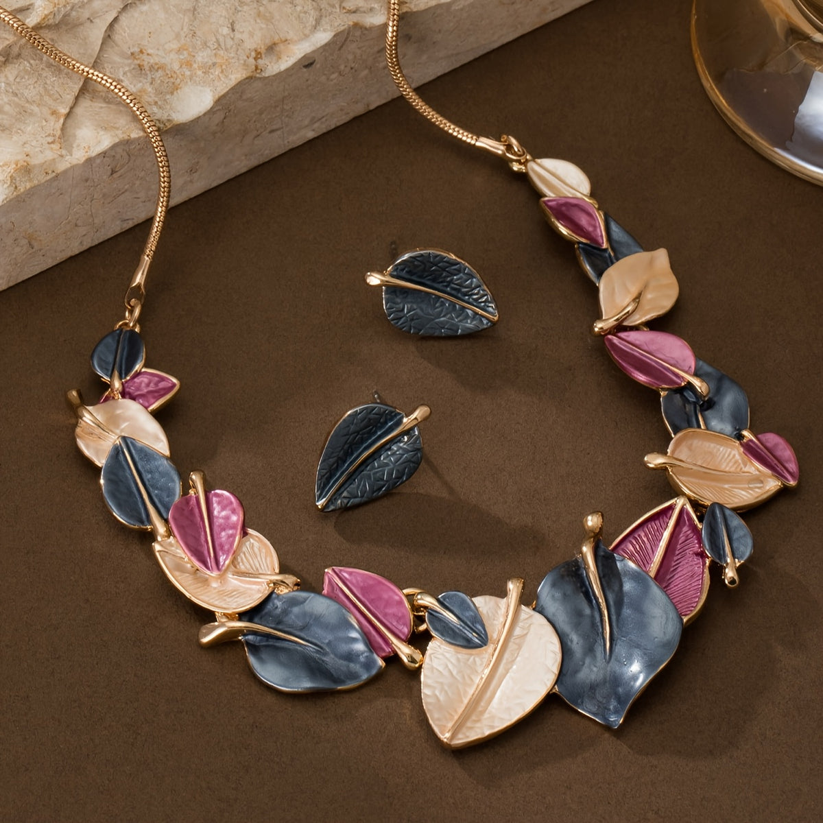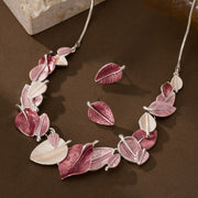 🌸 Gümüş Kaplama Pembe Yaprak Takı Seti – Bohem Yaz Şıklığı
