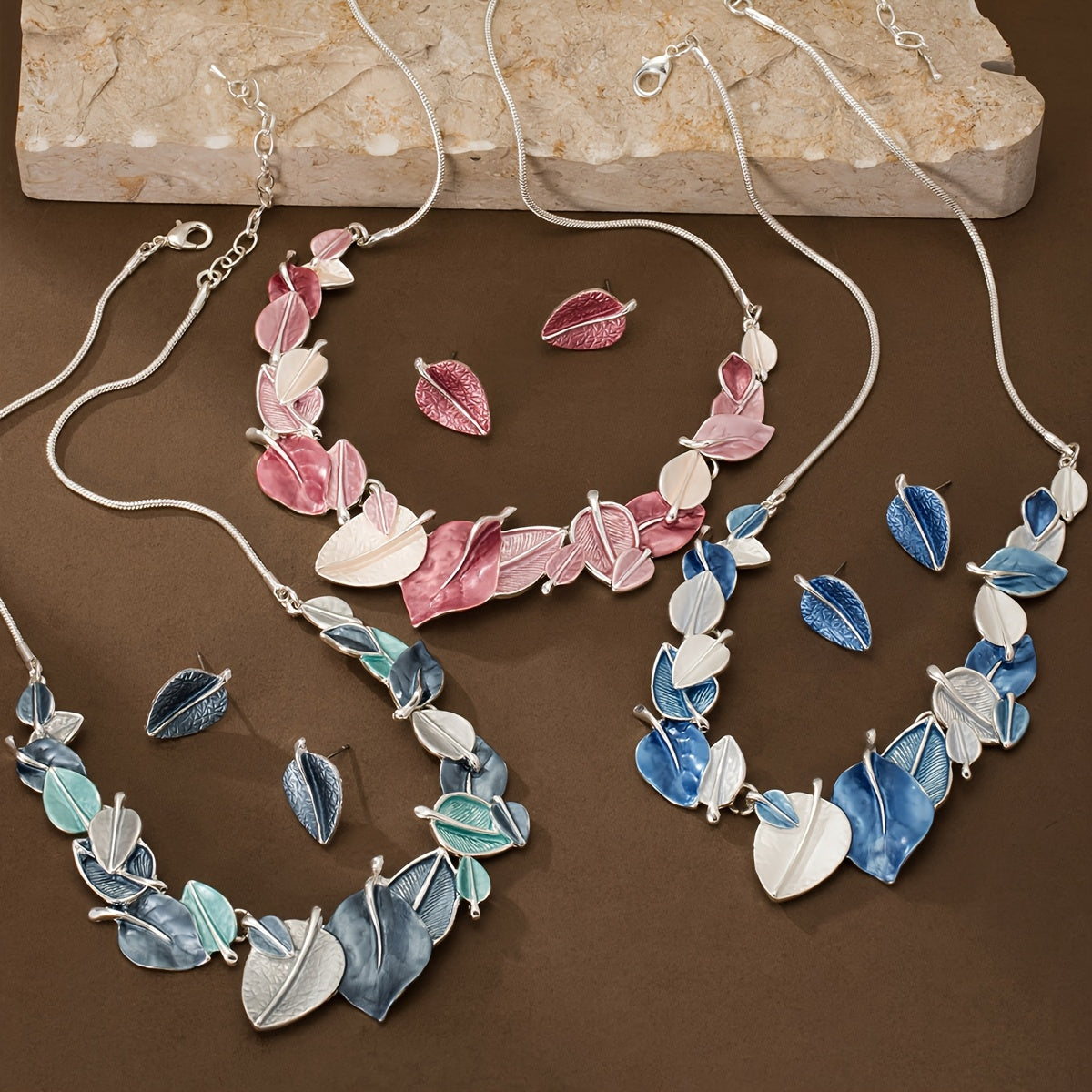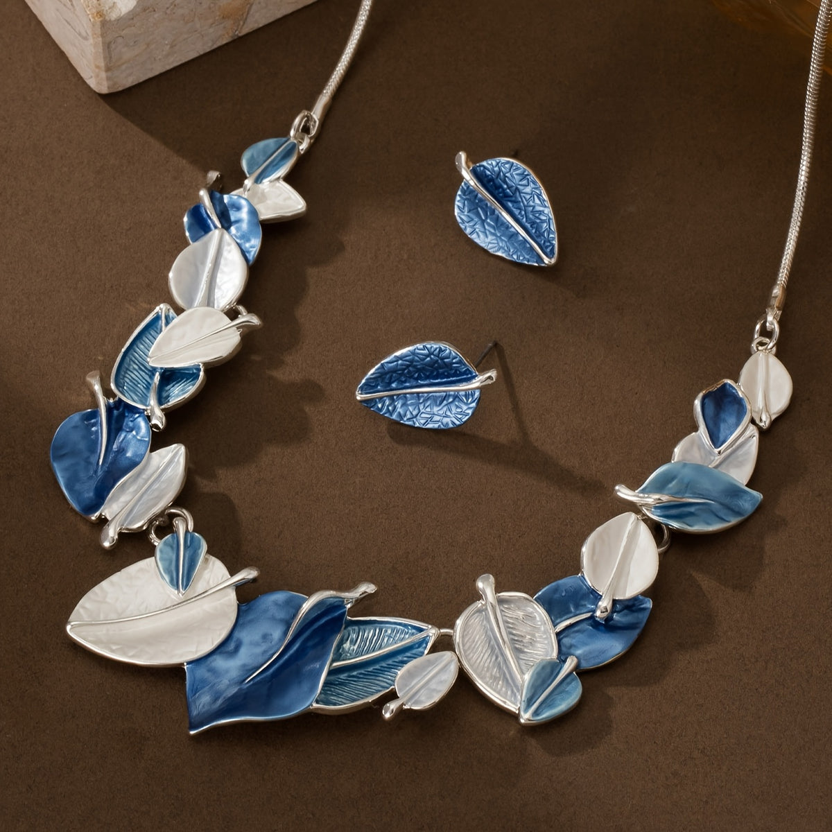 🌸 Gümüş Kaplama Pembe Yaprak Takı Seti – Bohem Yaz Şıklığı - Mavi