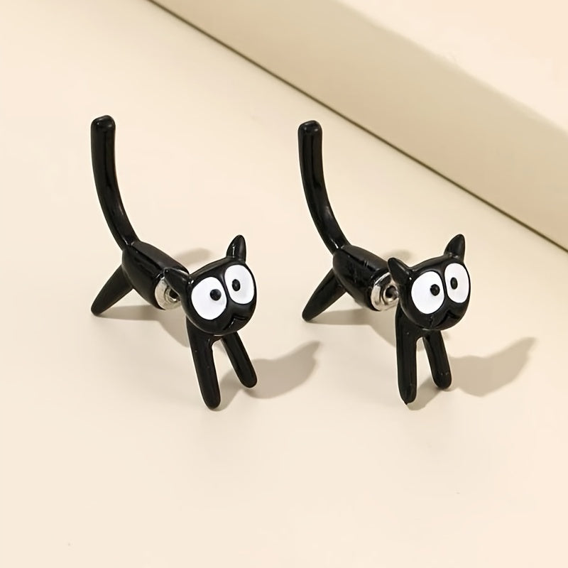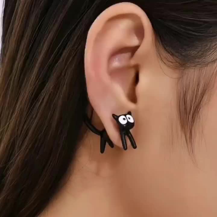🐾 Siyah Kedi Küpe – Sevimli ve Yaratıcı Tasarım - Siyah
