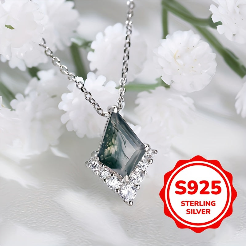 🌱 Doğal Yeşil Akik Gümüş Kolye – Canlı & Organik Güzellik