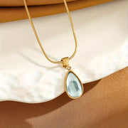 💧 Fransız Tarzı Damla Cam Kolye – Zarif ve Işıltılı Seçim - Altın