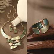 💫 3'lü Geometrik Desenli Takı Seti – Küpe, Kolye ve Yüzük Üçlüsü